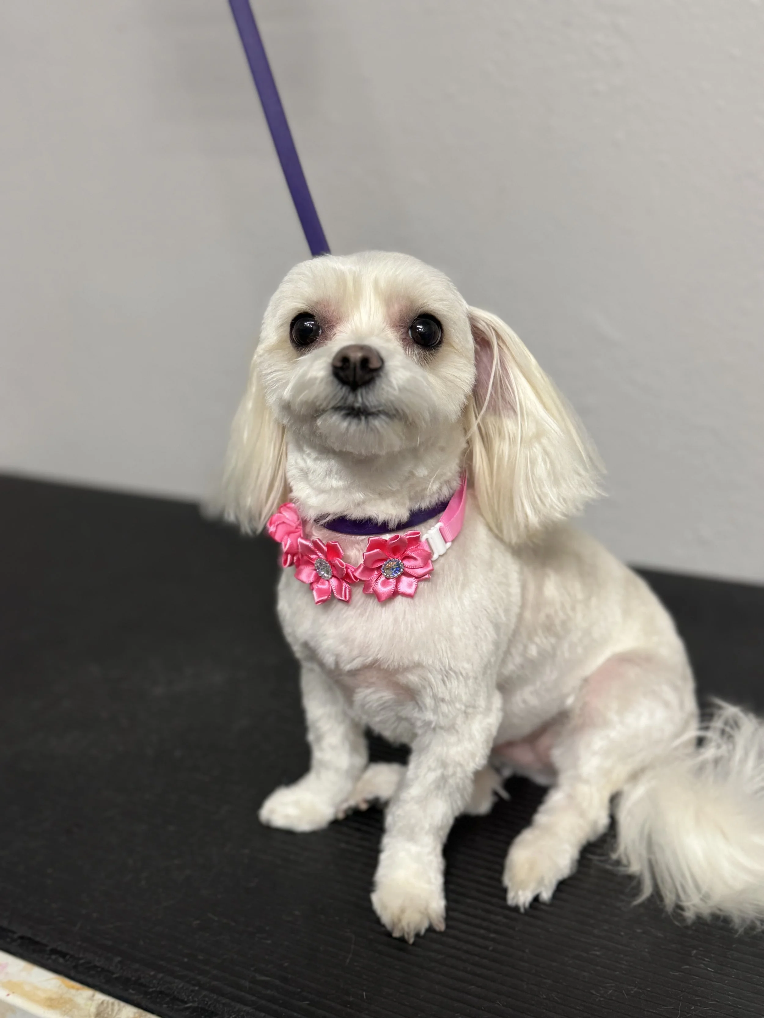 All haircut services include a bath using luxury pet products, haircut, nails clipped and filed, ear cleaning, pet accessories, and a spritz of luxury pet cologne.