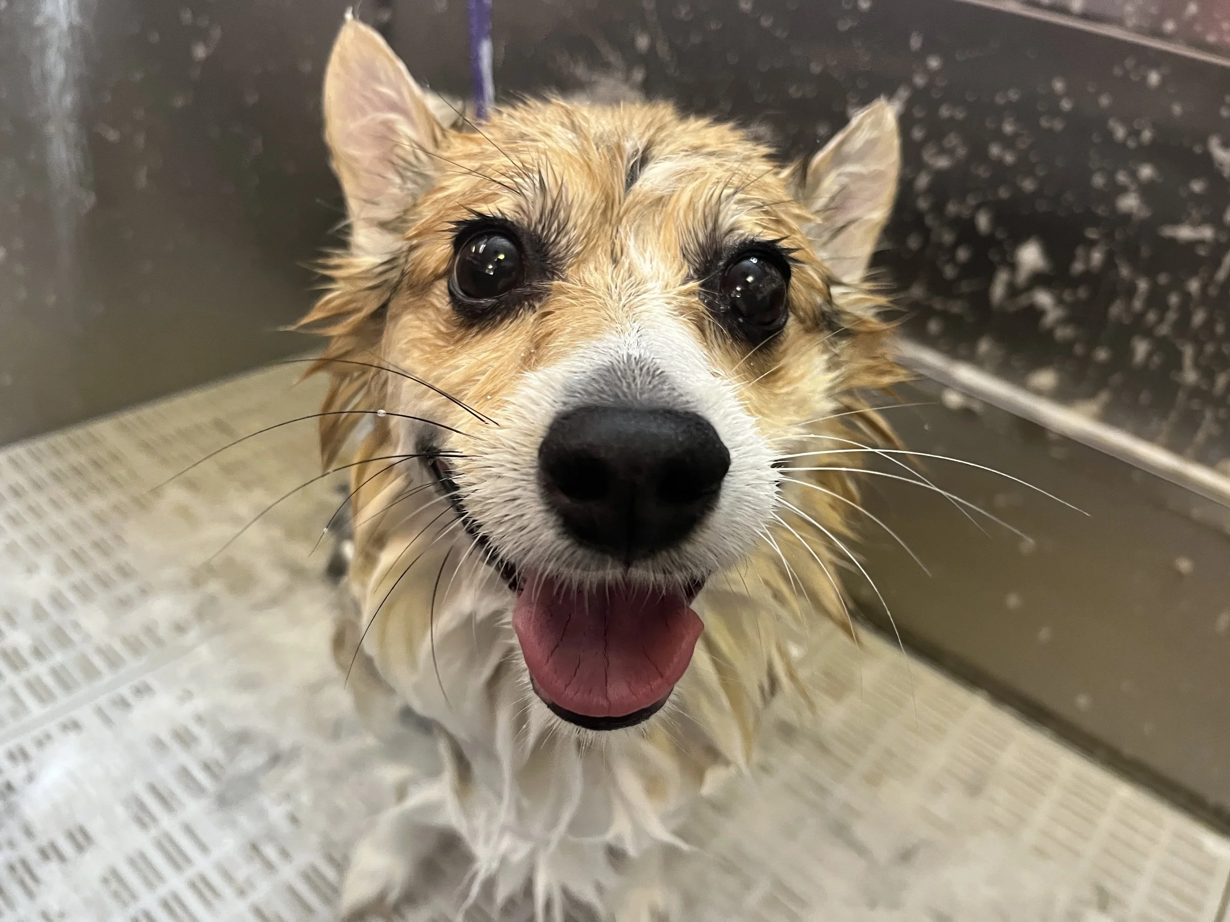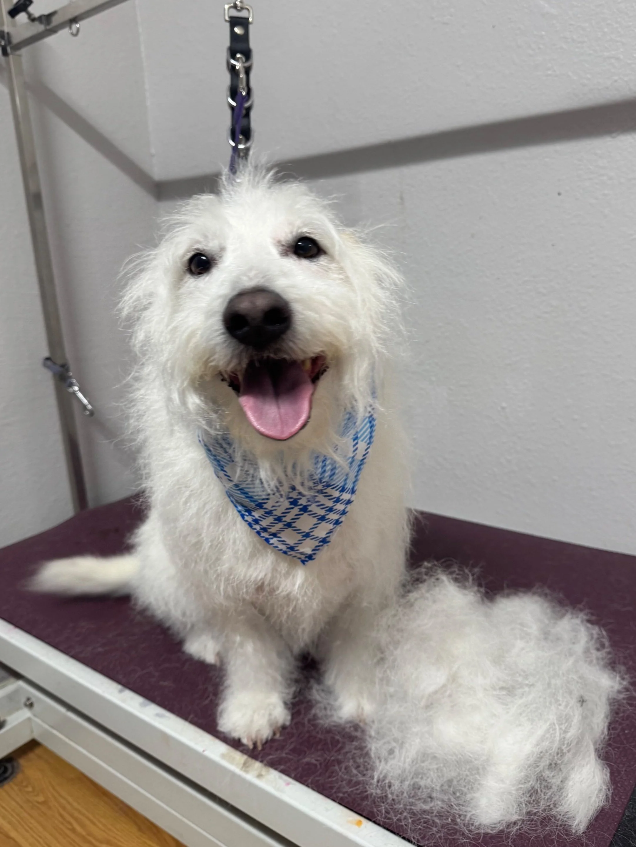 Our de-shedding treatment includes a luxury bath using de-shedding shampoo and conditioner, a blow out, up to 30 minutes of brushing, nail trimming, ear cleaning, bandana, and a spritz of luxury pet cologne. All deshedding services will be included in the haircutting or bathing price as it is what’s best for a double coated breed.